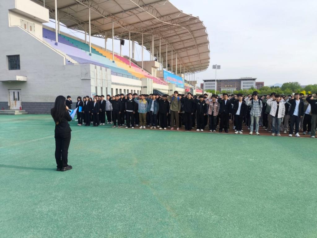 伴随着激昂的国歌,国旗护卫队迈着整齐有力的步伐,护送国旗入场。五星红旗冉冉升起,全体师生面向国旗行注目礼,爱国之情在心中澎湃,激励着他们以青春之力建设国家。